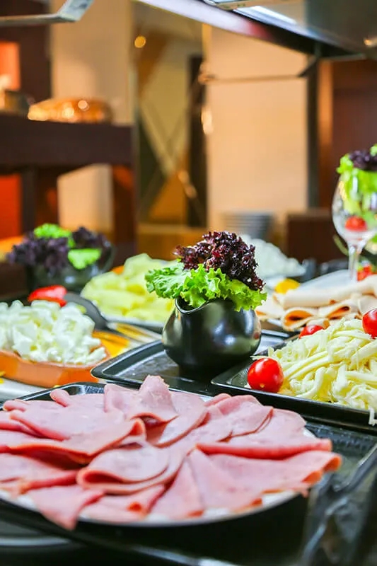 Türk ve dünya mutfaklarının en seçkin ve lezzetli örneklerini bir araya getiren açık büfe konseptimiz, şık ve ferah atmosferimizde siz değerli misafirlerimizin beğenisine sunulmaktadır. Her damak tadına hitap eden geniş menümüz, unutulmaz bir gastronomi deneyimi yaşatmayı hedeflemektedir.